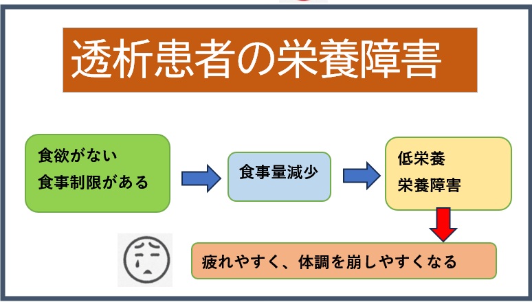 透析患者は、食事制限やホルモンの代謝異常などで、食欲不振になりやすい傾向にある